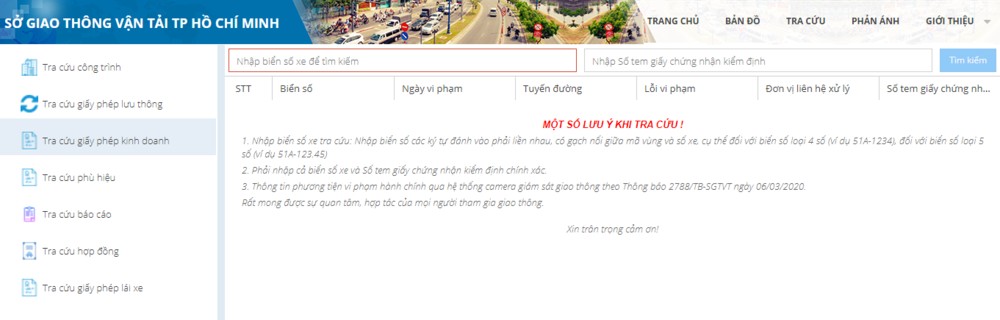 Tra cứu phạt nguội tại website của Sở Giao thông vận tải chỉ được áp dụng với một số tỉnh, thành phố có tích hợp tính năng này trên website của Sở GTVT như Đà Nẵng, TP. Hồ Chí Minh, Hà Nội,...